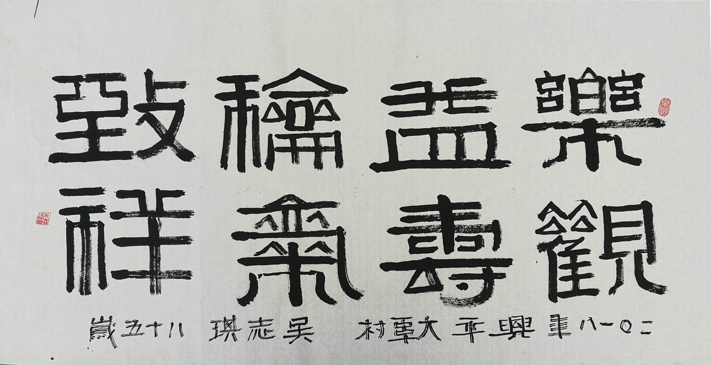 著名書畫收藏鑒賞家、書法理論家楊普義說:吳志琪老師是一位文化藝術的唯美主義者,他恪守“擁書自雄,以墨養心”信念,讀懂了魏晉風骨,又遍覽唐宋以來的前賢墨寶,直追藝術大道;書體出于漢隸,骨氣勁峭,法度謹嚴,于平正中見險絕,于規矩中見飄逸,筆畫穿插,安排妥貼。書法“雄強豪邁、率真俊逸,質樸渾厚、大氣磅礴。”點畫結體有初荷出水之嬌羞,承轉照應有嘉木交柯之蔥茂。其作品“謹嚴勁健,心摹手追,法明理通,很是精絕”。他幾十年如一日孜孜不倦,在書法領域獨領風騷,逐漸形成了自己“結構奇美、筆力勁辣、瀟灑出塵、不落俗套”的藝術風格。