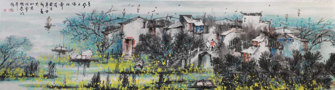 筆會現場,各位書畫家以筆代言,以紙為媒,揮毫潑墨,用藝術的形式書寫建黨百年光輝歷程,用特別的方式向建黨百年獻禮。此次書畫名家創作的作品各展所長、各具特色、立意高遠、創意新穎,每幅書畫作品都包含著對黨的熱愛,緬懷革命先輩,寄語新時代,既體現了書畫的高雅情趣,又表達了敬黨愛黨的真摯情懷。著名書畫家馮春明在筆會上繪制了《春風又綠江南岸》