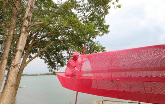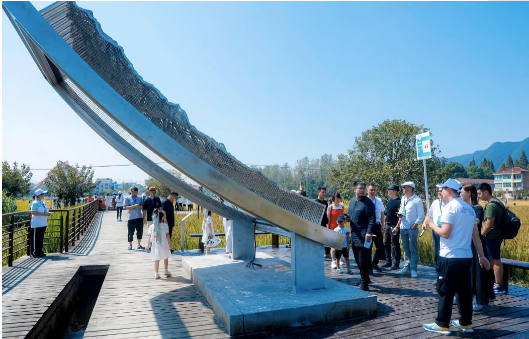 如今的梅蓉村,與古建筑、江村美景同時展現在觀眾眼前的是一件件公共藝術作品,這些作品以田野為舞臺,分布在梅蓉村的不同點位,與當地的自然與人文融為一體。以此達到鄉村接納藝術,藝術帶動鄉村,讓鄉村活力再現的目的。