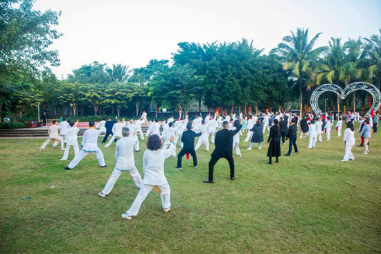 按照慣例,大部分嘉賓都已于會(huì)議前一日到達(dá),只為不錯(cuò)過(guò)集體晨練太極拳的時(shí)間。新年第一天,早上6點(diǎn)半,大家準(zhǔn)時(shí)赴會(huì),在和太極大家族里,太極是根、太極是魂、太極是文明!每個(gè)人都必須是身有太極“加持”的太極人, 迎著早晨第一縷陽(yáng)光, 打 一套自然舒展的太極拳, 頓感 神清氣爽,精神抖擻 。