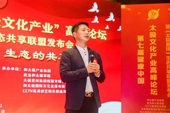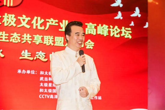 中國(guó)中小企業(yè)新零售專委會(huì)執(zhí)行會(huì)長(zhǎng)、湖北宜昌戰(zhàn)狼企業(yè)管理咨詢有限公司總裁殷祖碧先生致辭。殷總表示從第一次到武當(dāng)山學(xué)習(xí)太極以來(lái),就決定要將太極文化植入自己的企業(yè),讓更多的伙伴身心靈受益,今天也帶著眾多的合作伙伴參加本次論壇,希望共同將《太極星球》新零售聯(lián)盟做大做強(qiáng)!