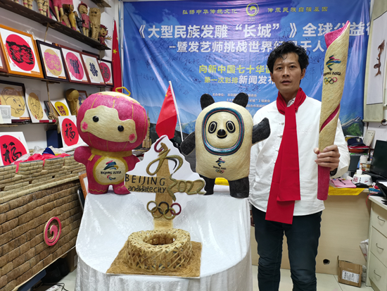 頭發雕塑發明家黃鑫用發雕藝術獻禮冬奧