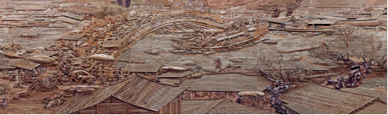 “文以載道,宗生萬(wàn)法。”在創(chuàng)作《紀(jì)智補(bǔ)全版清明上河圖》的日日夜夜,通過實(shí)地考察,學(xué)術(shù)研討,文獻(xiàn)考證一系列實(shí)事求是的調(diào)查研究,紀(jì)智先生所領(lǐng)導(dǎo)的團(tuán)隊(duì)在古香古色的傳世名畫與奇葩異彩的珍稀名木的資源對(duì)接中創(chuàng)作了經(jīng)典和經(jīng)典的巧妙相遇。比如對(duì)“清明上河圖”中絲綢之路的研究發(fā)現(xiàn)更進(jìn)一步把文化自信和文化學(xué)養(yǎng)結(jié)合起來。