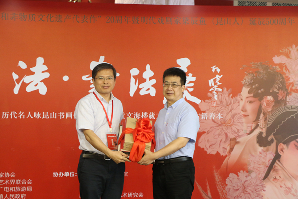 昆山市文聯主席馮惠清代表昆山市向中國藝術報社贈書