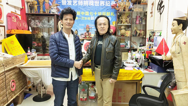 頭發雕塑發明家黃鑫(左)與著名詞曲作家姜延輝先生(右)