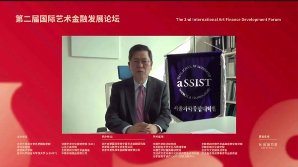 山東工商學院黨委書記白光昭;李可染畫院院長、中國美協河山畫會會長李庚;中國藝術經濟研究院學術委員會副主任、西安美術學院原黨委書記朱恪孝;北京外國語大學合肥國際學院黨支部書記、副院長陳貴龍;首爾科學綜合大學院大學校長KIM TaeHyun(金泰賢);中糧長城酒業有限公司黨委副書記、副總經理(主持工作)、中糧長城文化研究院院長程軍;中國藝術財富高等研究院(山東工商學院)院長、教授、博士生導師西沐;哈佛大學藝術學博士,中國教育部特聘“長江學者”,北京外國語大學藝術研究院院長、教授、博士生導師寧強;中央財經大學文化與傳媒學院院長、教授、博士生導師劉雙舟;中央美術學院藝術管理與教育學院副院長、教授、博士生導師、中央美術學院中國藝術金融研究中心主任趙力;中國人民大學應用經濟學院副院長,中國人民大學藝術品金融研究所副所長,教授、博士生導師黃雋;中國美術學院藝術管理與教育學院原副院長、教授,中國藝術經濟研究院研究員單增;首爾科學綜合大學院大學主任教授,博士生導師黃菲;韓國長頸鹿軟件開發研究院院長崔周賢;濰坊銀行原董事長,北京江融科技有限公司首席戰略顧問史躍峰;北京浩天律師事務所高級合伙人,首爾科學綜合大學院特聘教授云大慧;中國藝術經濟研究院副院長、鞍山師范學院教授、碩士生導師劉曉丹;廣州美術學院藝術與人文學院副教授、碩士生導師,藝術管理學系主任吳楊波;中央財經大學文化與傳媒學院副教授、中央財經大學藝術市場發展研究中心主任宗婭琮;EAC法國藝術文化管理學院中國區校長、盛慧藝文化傳播CEO包海鷹;李可染畫院辦公室主任王群;中國收藏家協會會長助理、體育文化收藏委員會主席李祥;中國藝術經濟研究院研究員,北外合肥國際學院中國藝術金融研究院研究員高峰;北外合肥國際學院中國藝術金融研究院執行院長陳斐鵬;中國藝術經濟研究院副秘書長、研究員林奧杰;中糧長城文化研究院執行院長陳遠志;北外合肥國際學院、西安美術學院、首爾科學綜合大學院大學、法國藝術文化管理學院、山東工商學院和國內外院校的藝術金融、藝術管理、文化產業等專業的師生;以及國內外關注藝術金融的各界嘉賓朋友共5000余人通過線上線下方式參加了論壇。
