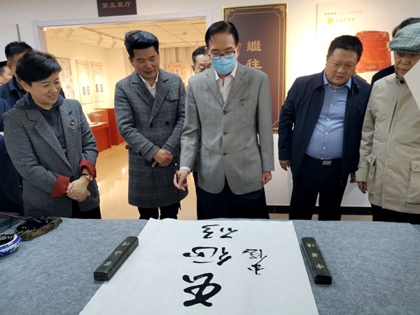 北京硯臺博物館展覽現場,長征硯主題創作展得到了與會嘉賓領導贊賞,中華炎黃文化研究會會長李玉賦欣然為長征硯題詞,給長征硯主題創作工程團隊全體組員以莫大的鼓舞!(攝影/于江)