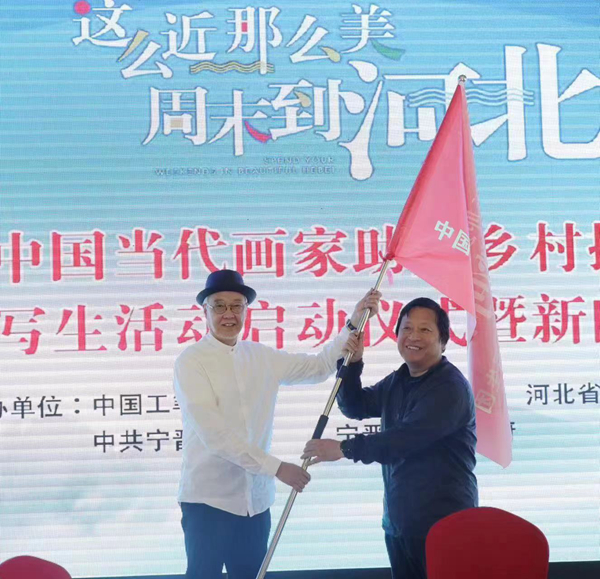 啟動儀式最后,中國工筆畫學會會長陳孟昕向第一批寫生團領隊徐惠泉授旗,并宣布此次采風寫生活動正式開始,參加第一批寫生的近20位人物畫家在陳孟昕會長、領隊徐惠泉帶領下直接奔赴雄安新區開始采風之旅。本次采風寫生活動計劃于5月22日到7月3日邀請全國的優秀畫家分產業人物、山水、花鳥三個批次,分別深入河北雄安新區、太行山區、邢臺寧晉城鎮、鄉村、企業、作坊、自然山水等地進行采風寫生。
