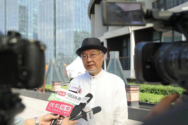 中國工筆畫學會會長陳孟昕先生啟動儀式后接受記者采訪
