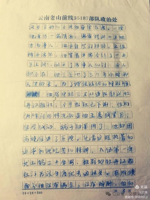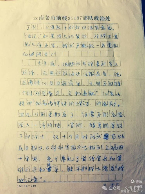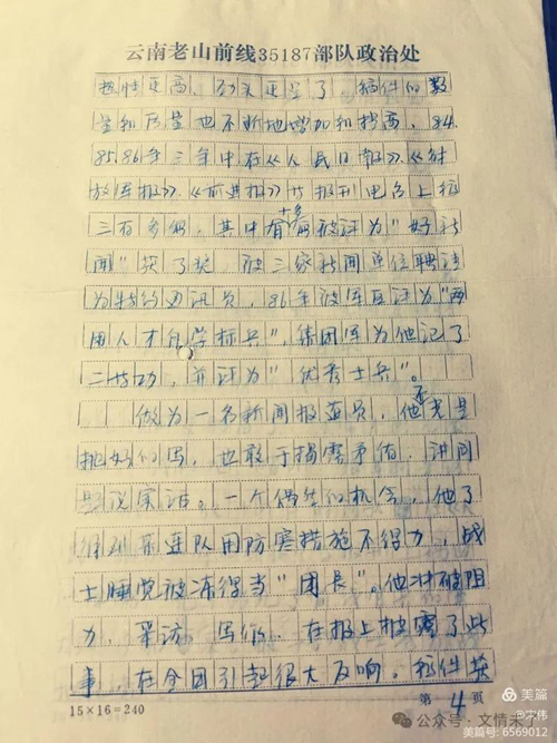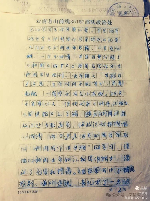 為了增強稿件的時效性,他寫完稿后又從連隊趕到牡丹江報社,可是報社已下班,值班編輯問明情況知道他正患感冒后,很受感動。 稿子被采用了,他卻因高燒住進了醫院。憑著這股執著的追求和能吃苦的精神,入伍第一年就上稿20篇,被駐地 牡丹江報社評為該年度優秀通訊員。