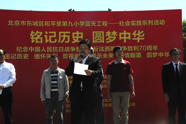 5月4上午10時許,由中華炎黃文化研究會硯文化專業委員會、北京市東城區和平里第九小學、北京和九飛躍青少年俱樂部、燕京書畫社、鑒石雜志社主辦;北京市東城區和平里第九小學、鑒石雜志社承辦,北京市第二十二中學協辦的“紀念中國人民抗日戰爭暨反法西斯戰爭勝利七十周年活動在豐臺區盧溝橋舉行。