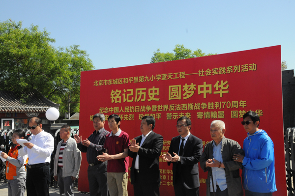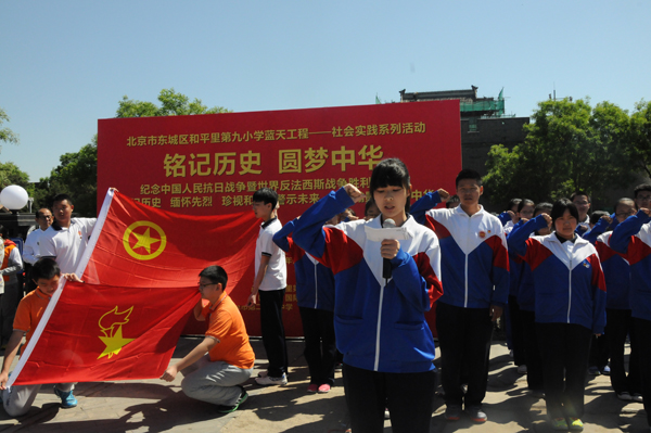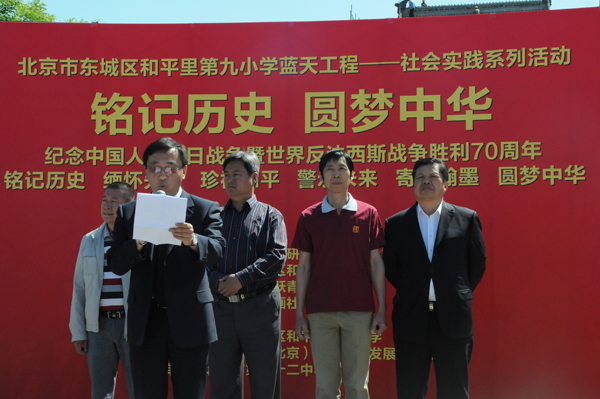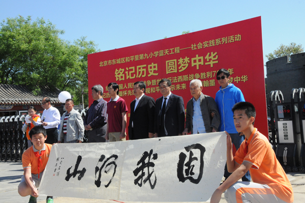 活動儀式上,東城區和平里第九小學校長單寧先生、燕京書畫社社長、著名書畫家張原先生先后致辭,表達了中國人民以史為鑒、不忘歷史的崇高熱情;中小學生代表分別在團旗和少先隊旗下宣誓展現努力學習、報效祖國的愛國情懷。本次活動的策劃者鑒石雜志社社長李曉坤告訴記者,通過本次活動,意在進一步加強廣大青少年學生的愛國主義和社會主義核心價值觀的教育,為實現偉大復興的中國夢添磚加瓦。全國政協委員、原武警部隊副司令員、中華炎黃文化研究會副會長劉紅軍中將對本次活動給予了高度評價。