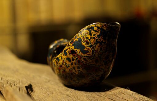 由于技藝斷代及市場萎縮,當代天然性胎體漆器大多談不上規模化制作了,偶見藝術個體用在作品上,比較零星。福建,臺灣,北京等地都有藝術個體進行創作,各屆展覽也偶爾見到類似作品,經調查廣西的傳統手藝人,也已經多年不制作此類漆器,雖然可以口述流程,但失傳的岌岌可危之態,只是時間性問題了。國內最集中的天然胎制作團體主要是桂林觀古樓藝術村,制作團隊有七八十人,目前我們是國內較大的漆藝群體。觀古樓大部分作品以天然性胎體漆器制作為主。胎體材料以竹根,葫蘆,靈芝,貝殼等天然性材料,制作周期一般一到三年。制作天然胎漆器,除了要繼承使用傳統工藝,也要深入研究天然胎體的物理缺點,并制訂合理的施漆打磨工藝,才能完成制作。與古代天然胎漆器不同的是,桂林的現代天然胎漆器在工藝上進行了很多改良,除了實用價值,審美要求也更高,胎體制作也更趨于輕薄精致,而且髹漆層數也更為繁復,打磨工藝更加成熟細膩。以觀古樓漆器為例,竹根胎漆器的器壁往往厚度只有一毫米,髹漆完成后的厚度也只有兩毫米,制作使用水磨工藝后,作品輕巧精滑,視覺效果斑斕多變。由于追求輕薄,所以我們在天然性胎體上基本不進行刮灰,以便讓漆器更加輕巧,同時在髹漆過程中布置警戒色層,打磨到警戒色層就停止深入,這樣及避免了打磨過程中磨出瓦灰不美觀的缺點,最后整體效果更加精美。
