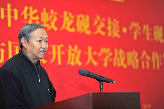 中硯聯(lián)常務(wù)副會(huì)長(zhǎng)張補(bǔ)旺少將在蛟龍硯捐贈(zèng)儀式上致辭