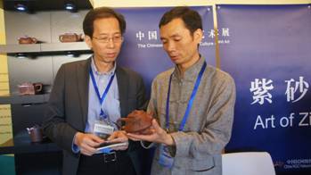 對話會期間第十一屆全國政協副主席、中國文聯主席孫家正先生,參觀了紫砂藝術,對紫砂文化傳承保護與發揚光大給予重要關切,高度評價了宜興市國禮紫砂藝術研究所所長汪成瓊的藝術水準,并對他去年北京APEC峰會中所作出的貢獻給予充分肯定,寄望他多出紫砂藝術精品,承載更多更優秀的中華文化精髓,為中國文化走向國際多做貢獻!