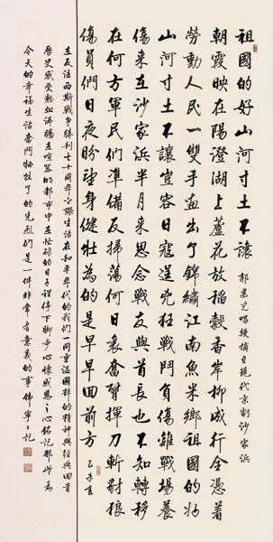 書法家韓寧寧經(jīng)過多年的努力,從中華民族的的國粹,京劇中汲取精華,將《沙家浜》《紅燈記》《失空斬》等名劇中的優(yōu)秀唱段,用書法的藝術形式表現(xiàn)出來,呈現(xiàn)了不同時期中華民族的不畏強暴,抵御外辱,英勇抗爭,厚德善良,靈秀智慧,感恩忠誠,樂于助人等等優(yōu)秀品質(zhì)。特別是書錄了 表現(xiàn)反法西斯戰(zhàn)爭的現(xiàn)代京劇的大多經(jīng)典唱段,以紀念七十年前中國人民不屈不撓抵抗外來侵略的民族精神。