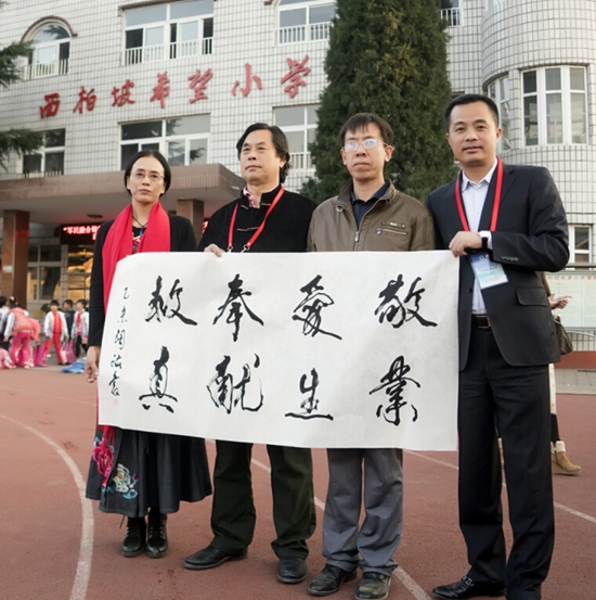 活動期間,活動組委會不僅組織知名書畫家一行實地參觀了西柏坡紀念館、七屆二中全會會址等中共中央舊址等紅色景點,還來到西柏坡希望小學開展了特色文化援建活動,為學校老師和學生書寫校風、校訓等,還為學校捐贈了籃球、書包、文具盒、鉛筆、橡皮等學習和體育用品。老師和同學們被這種獨特而新奇的援建方式所吸引,并與書畫家們合影留念。