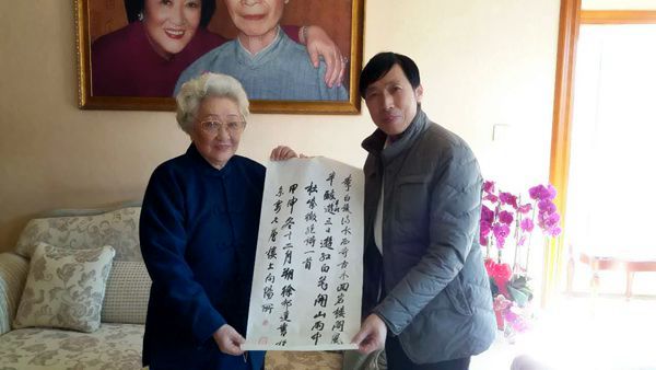 2015年12月14日下午,著名攝影家、光影平面油畫創(chuàng)始人,中華光影平面油畫藝術學會于江會長,中華光影平面油畫藝術學會副會長兼秘書長黃中一行專程拜訪著名書畫家、鑒定家、藝術史界的學術泰斗徐邦達先生的夫人滕芳女士,于江院長向滕芳女士介紹了中華光影平面油畫藝術的生發(fā)境況與發(fā)展態(tài)勢,并贈送了他親手創(chuàng)作的光影平面油畫藝術《滕芳女士肖像》!滕芳前輩對光影平面油畫藝術給予了充分地評價與贊賞,為鼓勵中華光影平面油畫藝術,滕芳女士慷慨回贈給于江院長一幅徐邦達先生生前書寫的珍貴墨寶!滕芳女士語重心長地說道為:這門藝術很了不起,一定要把這門既有本民族特色又具世界風尚的藝術流派推廣到國際藝術舞臺上,多宣傳中國的優(yōu)秀文化,展現(xiàn)中國的精神風貌!