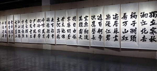 為隆重紀念毛主席誕辰122周年,盧鴻剛先生歷時半年時間精心創作五十多幅精品力作,其中膾炙人口的《沁園春·長沙》和《沁園春·雪》兩幅書法作品氣勢磅礴,雄渾厚重,以神完氣足的如椽大筆書寫領袖詩篇,深切緬懷一代偉人,歌頌老一輩無產階級革命家們的豐功偉績,以激勵我們后人永遠不忘前輩的恩情、奉獻和犧牲的精神。此次盧鴻鋼書法展是今年至德企業文化發展中心先后組織藝術家走進沂蒙、延安、井岡山、西柏坡四大革命老區圣地,以書畫藝術弘揚四紅精神活動之后,又一次深入響應習近平總書記“推動軍民融合深度發展的”戰略決策及詮釋軍民融合、共圓偉大“中國夢”的具體行動。