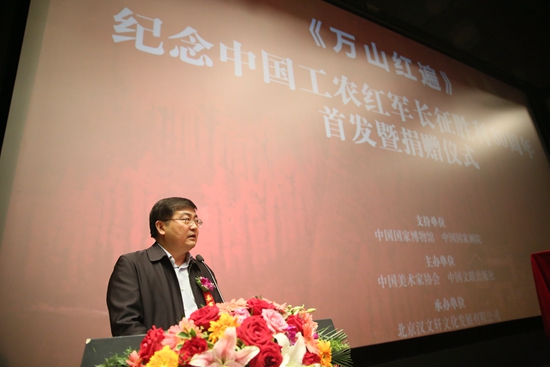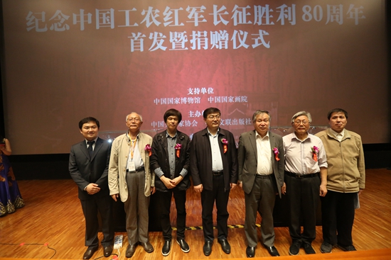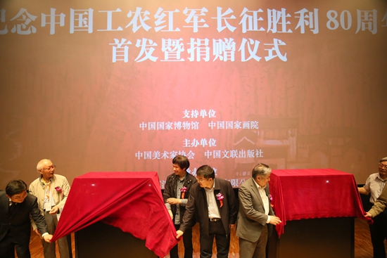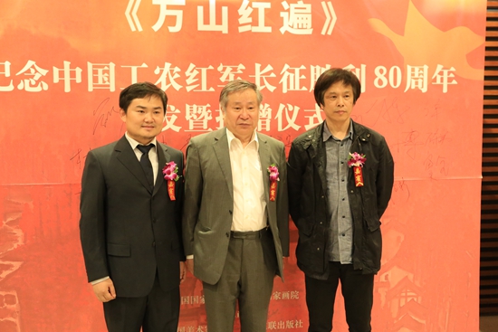 為紀(jì)念中國(guó)工農(nóng)紅軍長(zhǎng)征勝利80周年,中國(guó)國(guó)家博物館、中國(guó)國(guó)家畫(huà)院、中國(guó)美術(shù)家協(xié)會(huì)、中國(guó)文聯(lián)出版社5月16日在國(guó)家博物館聯(lián)合舉辦以美術(shù)大師李可染先生代表作為題的《萬(wàn)山紅遍——紀(jì)念中國(guó)工農(nóng)紅軍長(zhǎng)征勝利80周年》精品畫(huà)集首發(fā)式暨捐贈(zèng)儀式。