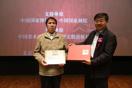 中國(guó)國(guó)家博物館、中國(guó)國(guó)家畫(huà)院、中國(guó)文聯(lián)出版社、中國(guó)美術(shù)家協(xié)會(huì)等領(lǐng)導(dǎo)嘉賓共同為《萬(wàn)山紅遍》畫(huà)集的首發(fā)進(jìn)行了揭幕。中國(guó)文聯(lián)出版社社長(zhǎng)兼總編輯朱慶將編號(hào)為00001號(hào)《萬(wàn)山紅遍》畫(huà)集捐贈(zèng)給中國(guó)國(guó)家博物館并由其收藏。