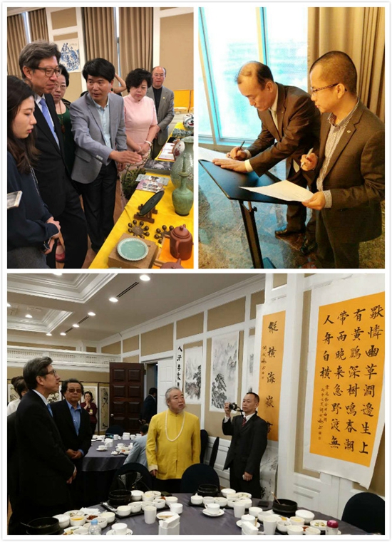 左上/組委會常務副秘書長趙蘋代表中華炎黃文化研究會硯文化聯合會向韓國國會捐贈飛天硯