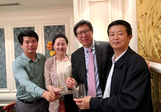 中華炎黃文化研究會硯文化聯合會執行會長兼秘書長唐本高等與樸亨峻閣下親切交流