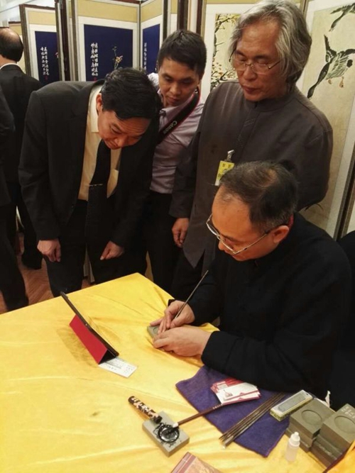 王安平出席中韓非遺高峰論壇展示端硯制作技藝