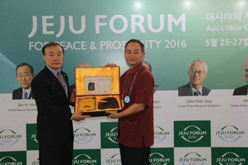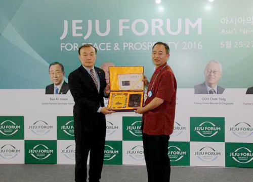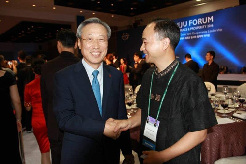 制硯大師王安平與出席濟(jì)州論壇的國際政要親切交流
