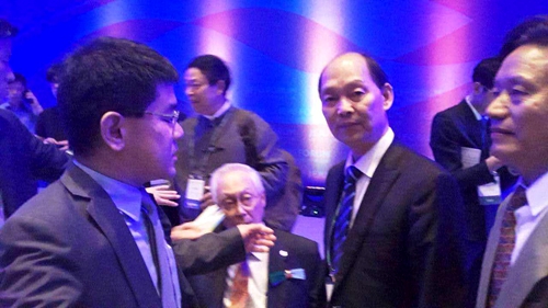 中國非遺戰略聯盟玉專委主任江功堯和新加坡前總理吳作棟在一起