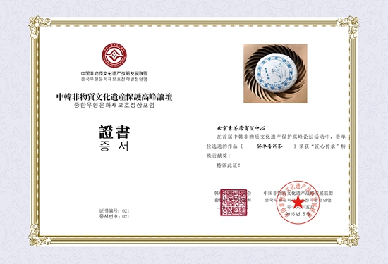 此次依單系普洱茶在韓國國會展出了中華非遺品牌普洱茶文化之魅力神韻;國會秘書長樸亨峻為依單茶頒發(fā)了由本人親筆簽名的大韓民國國會收藏證書。經(jīng)過中韓非遺高峰論壇組委會藝術(shù)評估專家委員會綜合評價,依單位普洱茶制作技藝榮獲中韓非物質(zhì)文化遺產(chǎn)保護(hù)高峰論壇暨逸品神工藝術(shù)精品展最高獎項:“匠心傳承•特別貢獻(xiàn)獎”。此次依單系列普洱茶走進(jìn)大韓民國國會展出,對活態(tài)傳承民族非物質(zhì)文化遺產(chǎn)及創(chuàng)意生產(chǎn)性保護(hù)的重要性。促進(jìn)了中韓非物質(zhì)文化遺產(chǎn)的交流與合作,對中華茶文化走向世界有著重要而深遠(yuǎn)的意義。
