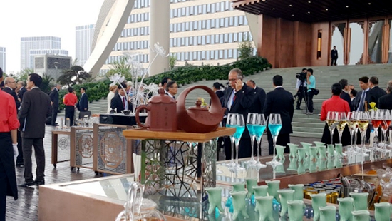 除了張藝謀美輪美奐的《最憶是杭州》讓世界感到驚艷,還有中國紫砂文化也在杭州G20閃耀亮相,“中國紫砂文化大使”——紫砂藝術家汪成瓊先生,作為本次杭州G20領導人專用紫砂壺指定藝術家,由他創作出的《紫韻東方·日月同輝》可謂匠心獨運,作品圍繞杭州人心頭最柔軟的一汪盈盈碧水——西湖,將千年等一回那種最動人的美學元素融入紫砂壺創作之中,各國領導人在茶歇之余,感受中國紫砂韻味與世界文化的交融與對話。