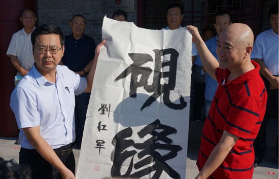 金彤副會長向孫軼青藝術館贈送劉紅軍會長題字