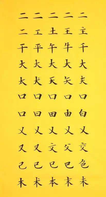 2. 變化。這指得是字要有大小,筆畫有長短粗細,寫字時有提有按,這樣書寫出來的筆畫就會有輕重變化。