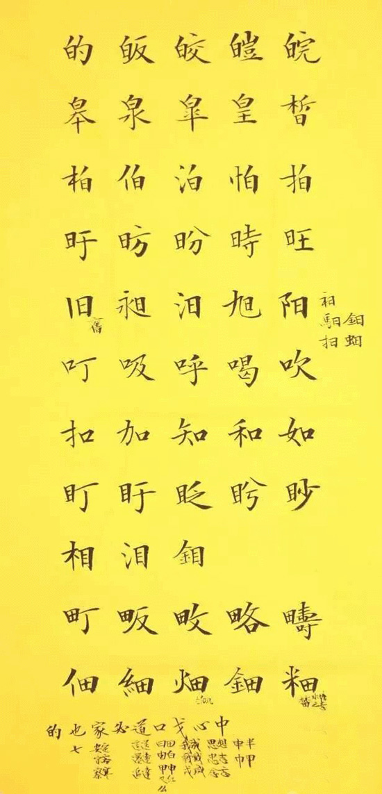 1. 統一。主要是指筆畫與筆畫、字與字、行與行之間,無論如何均要做到筆法統一,筆畫統一。