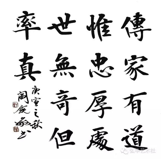 5. 平行等距、上緊下松。這里的平行等距指得是筆畫與筆畫、字與字、行與行之間的平行等距。如果是筆畫多的字,還應該注意上緊下松。