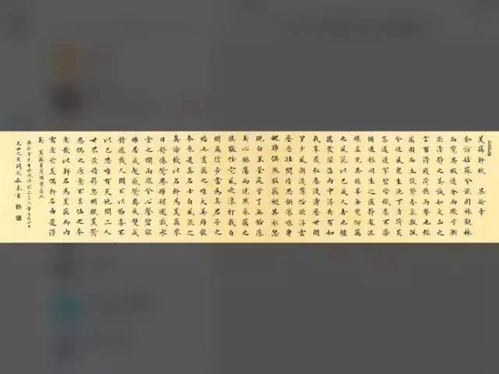 是書法作品中左右伸展較長的一種格式,因為其長度遠遠大于高度,而且長度太長無法懸掛,只能用手邊展開、邊欣賞、邊卷合,所以叫“長卷”。它的內容大多為一篇完整的文章或者一首長詩詞。手卷篇幅較短的有三、四米,長的可達數十米以上,寬度一般為三十至五十厘米之間。卷首外有“題簽”,卷內開頭有“引首”,后有“題跋”。