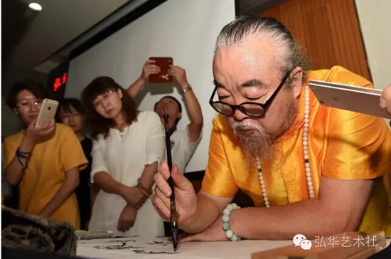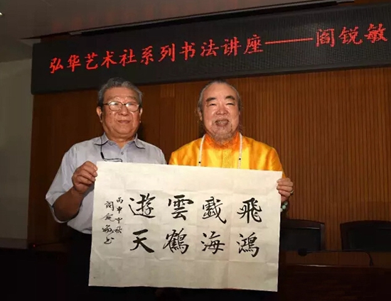 最后,閆老師題字“飛鴻戲海,云鶴游天”,并與會員們合影留念。