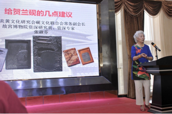 中華炎黃文化研究會(huì)硯文化聯(lián)合會(huì)常務(wù)副會(huì)長(zhǎng),首席專家,故宮博物院研究院張淑芬女士,主旨發(fā)言《給賀蘭硯的幾點(diǎn)建議》
