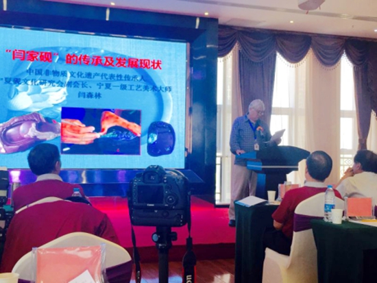 中國(guó)非物質(zhì)文化遺產(chǎn)代表性傳承人、寧夏硯文化研究會(huì)副會(huì)長(zhǎng)閆森林先生發(fā)言主題《閆家硯的傳承及發(fā)展現(xiàn)狀》