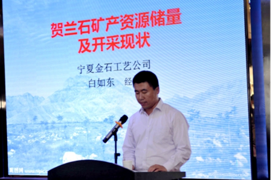 寧夏金石工藝公司副經(jīng)理白如東先生發(fā)言主題:《賀蘭硯石礦產(chǎn)資源儲(chǔ)量及開(kāi)采現(xiàn)狀》