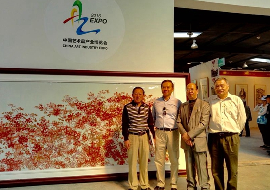 由文化部、北京市政府主辦的第三屆“中國藝術品產業博覽會”于九月二十九日至十月五日,在北京通州上上國際美術館成功舉辦。書畫篆刻瓷藝大家、兒童美術教育家華奎應邀參加了本屆博覽會主題場館“大國工匠 . 陶瓷藝術”展區的展覽,共展華奎先生的精品力作六十多件。華奎先生的瓷藝作品風格獨特、品味高雅、形式多樣。在歷時七天的展覽中華奎先生精湛的技藝受到廣泛的認同,眾多媒體對其進行了采訪報道。其中他創作的價值三千萬的巨型(3.6米X1.6米)高溫釉下五彩瓷板畫《萬紫千紅總是春》色彩明麗、大氣磅礴、迎來了成千上萬的觀眾駐足觀摩品評,留影紀念,成為本屆博覽會的焦點、亮點。