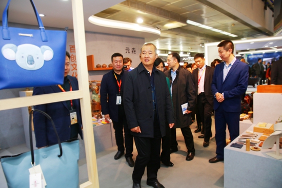 隨后,李偉部長又重點關注了通州味道及宋莊藝術區展示區域,饒有興致的參觀來自通州本土的20余家文創企業的文創產品及衍生品,并不時與參展企業交流。