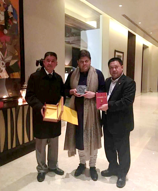 董方軍會長向印度國大黨黨鞭、瓜廖爾城邦君主、辛迪亞王子贈送由“聚硯齋”榮譽出品的精品硯臺。
