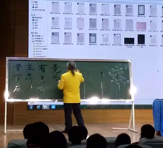 閆老師通過(guò)課前跟老師們的交流,了解到同學(xué)們學(xué)習(xí)書(shū)法的基本情況,對(duì)學(xué)校領(lǐng)導(dǎo)的行為表示肯定和贊賞,并發(fā)表了自己對(duì)書(shū)法的獨(dú)特見(jiàn)解。
