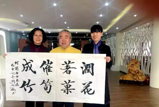 課程結(jié)束之際,閆老師寄語(yǔ)實(shí)驗(yàn)小學(xué)的師生:字如其人,好好寫(xiě)字,好好做人!授課完畢,閆老師又揮毫潑墨——寫(xiě)了“潤(rùn)花著菓,催筍成竹”“沐育英才”等兩幅墨寶贈(zèng)予校方,老師們齊呼好字好字!簡(jiǎn)直是筆尖上的舞蹈!學(xué)校領(lǐng)導(dǎo)也對(duì)閆老師予以肯定,并頒發(fā)了“書(shū)法導(dǎo)師”的榮譽(yù)證。
