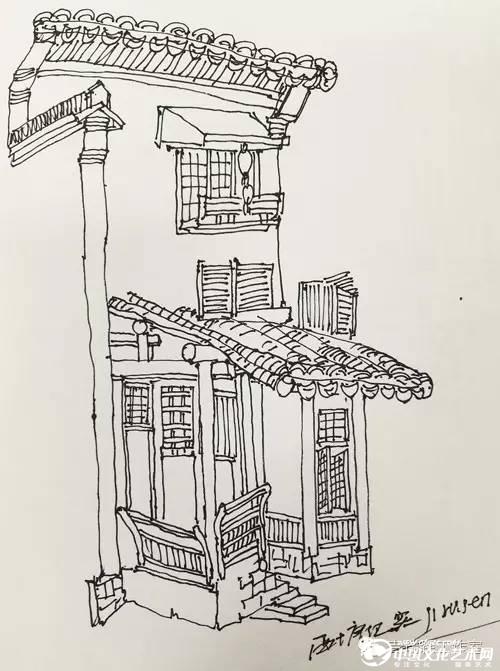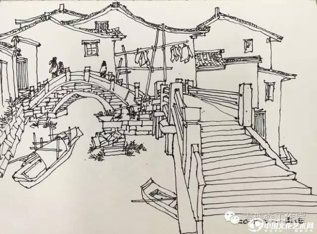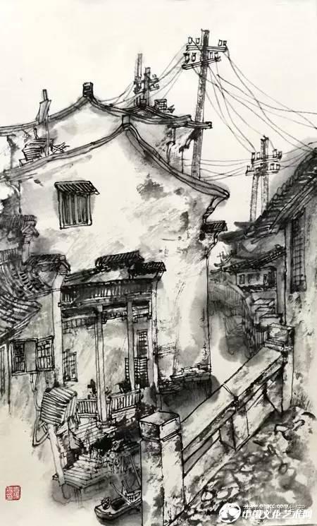 這次寫生教學,我要求學員通過觀察抓住西塘水鄉建筑的主要特點,比如灰色屋面的高低錯落和形狀的不同變化,高大的馬頭墻與人字形屋面的強烈對比,河道也不再是北方的婉轉,而是被建筑投影切割成一排長短不一的直線,老式電桿和錯綜繁雜的電纜線所形成的空間變化等等一切的西塘元素無一不能入畫!