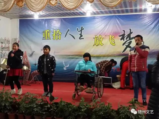 沒辦法,我只好被他拉著去看了曾都區愛心職業培訓學校和隨縣博愛特殊教育學校,觀看了孩子們艱難的表演。是的,他們沒有正常孩子一樣健康的身體和在舞臺上精湛的技藝,但他們直面生活和人生的勇氣令人感動。