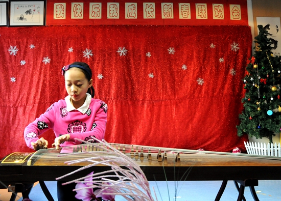 大班的孩子給大家帶來的是古箏獨奏和歌舞表演,其古箏獨奏表演一招一式專業精彩,高雅自然地表演透逸出清脆悅耳,如山泉般流暢的音符、沁人心脾;歌舞表演中熱鬧的舞臺、精致的裝扮、幽默的語言,贏得了在場所有孩子、家長和老師的陣陣掌聲。