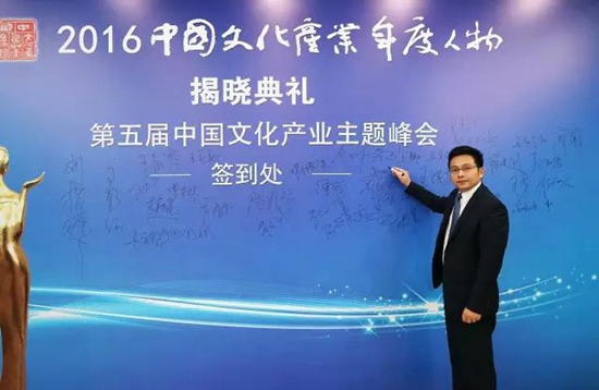 張志兵(中)榮獲“2016中國文化產(chǎn)業(yè)年度人物提名獎(jiǎng)”